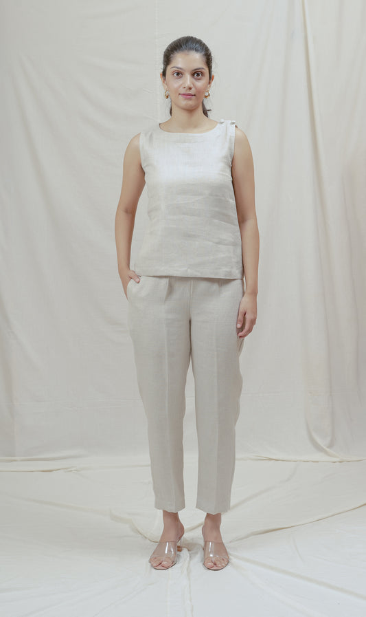 Each silhouette moves with ease yet carries structure, a dialogue between fluidity and form, comfort and composure. Crafted from pure linen with TawnyDove’s signature detailing, the pieces echo a kind of power that never needs to shout.