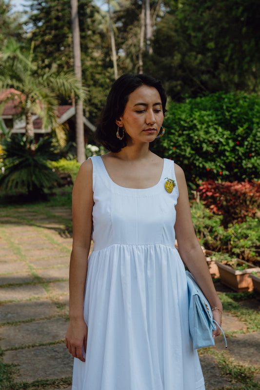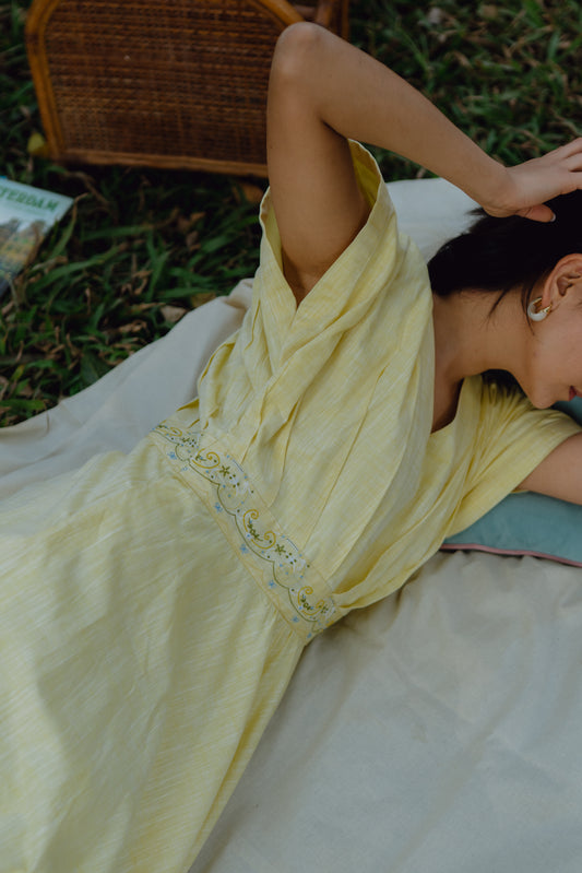 Crafted entirely in breathable cotton and linen, finished with delicate hand embroidery, each piece is designed to move with light, air, and ease. Think sun-faded balconies, linen curtains dancing in the breeze, lemon groves, coastal walks, and long lunches under striped umbrellas.