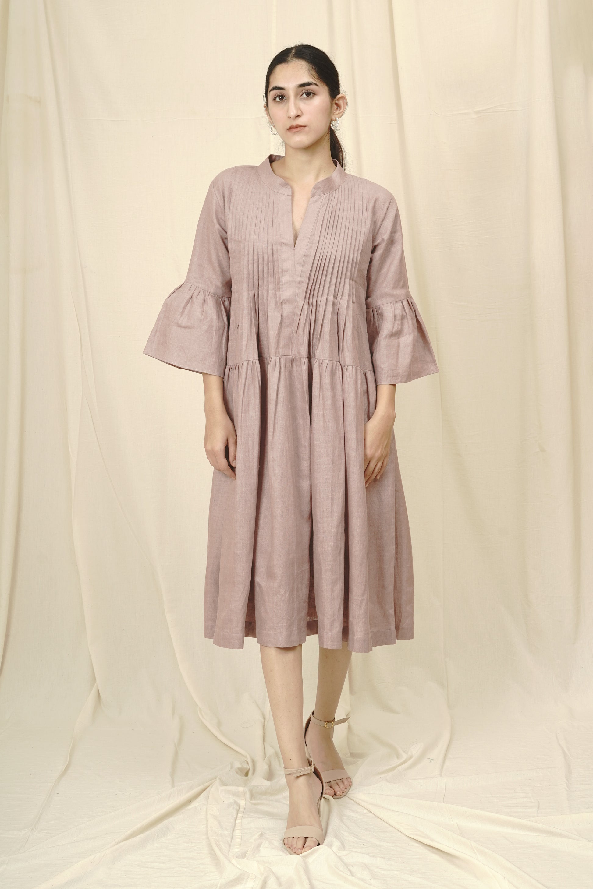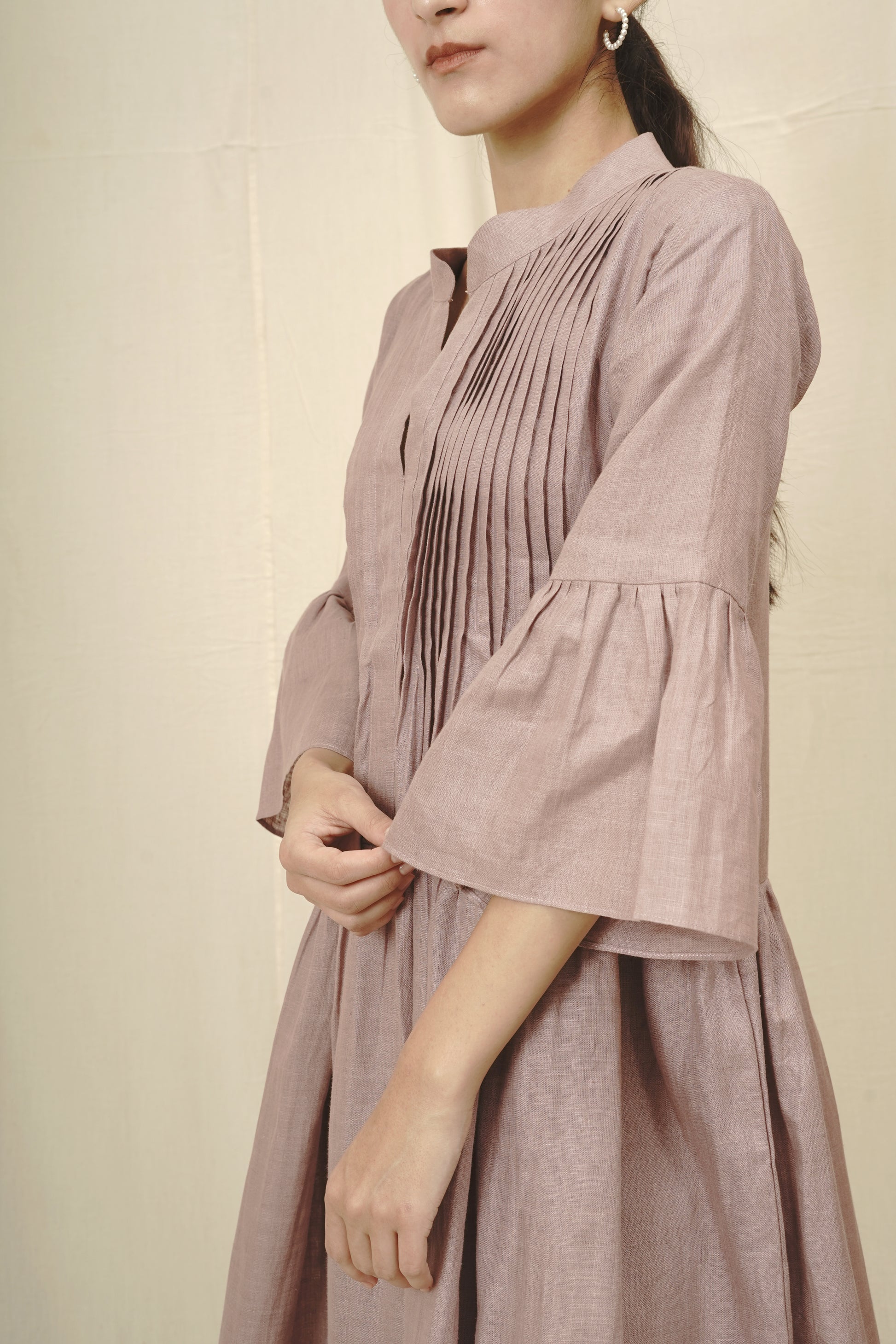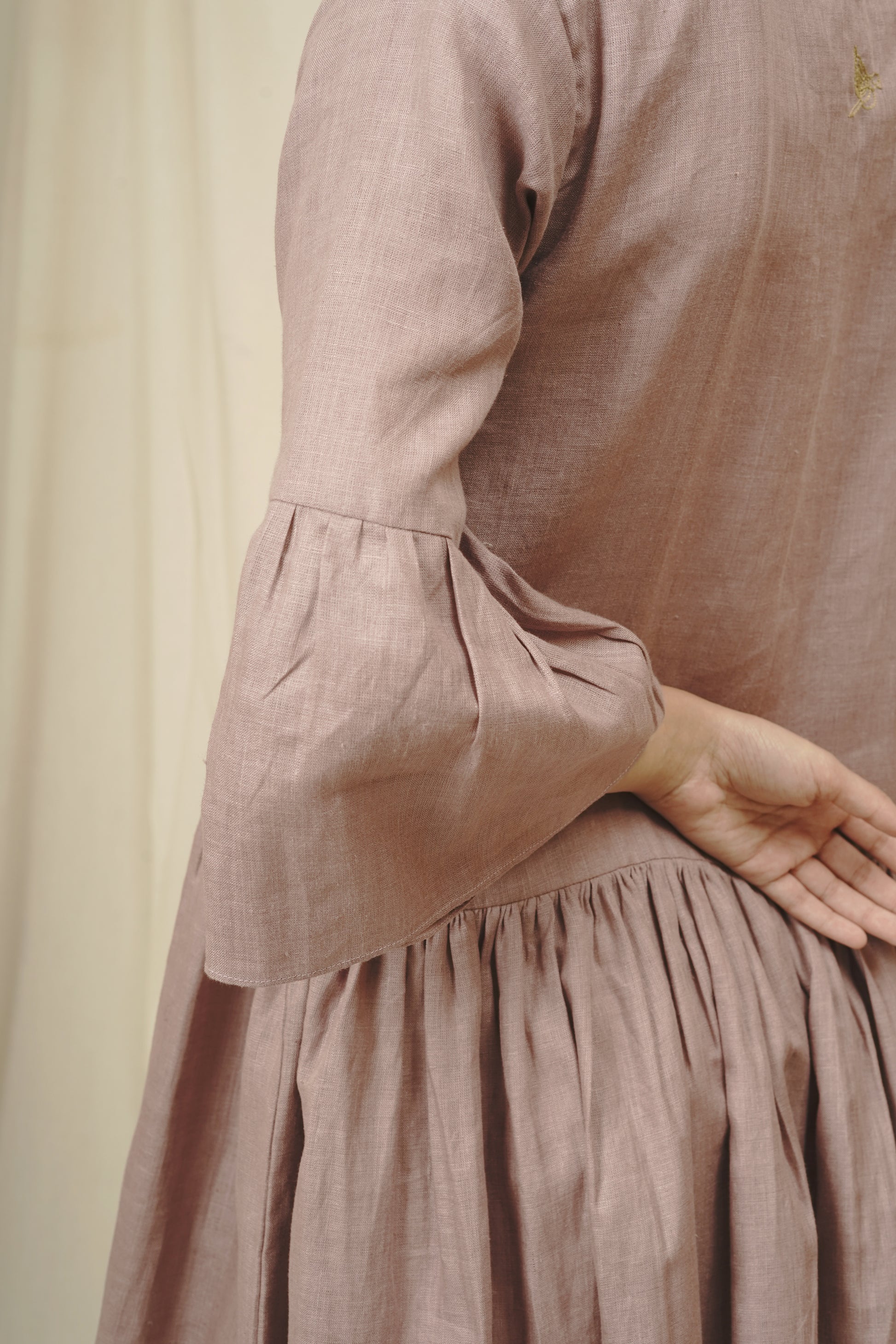 Mid-Length Dress with Flared Sleeves and Gathered Waist