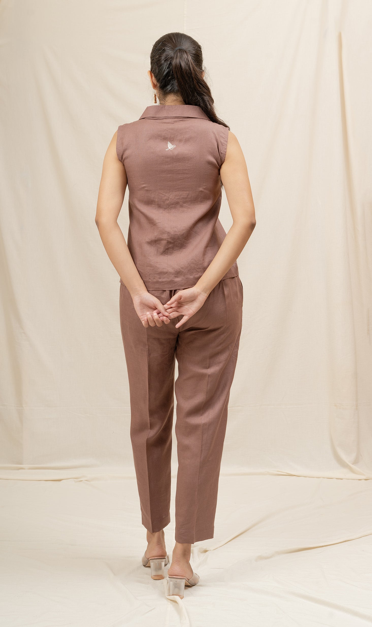 Sleeveless button-down top with a smart collar